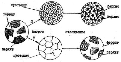 аустенита в нагретом состоянии и грубой ферритно-перлитной структурой в