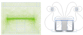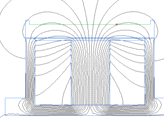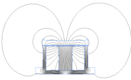 магнетрона с жидкометаллической мишенью. Смоделировано магнитное поле на