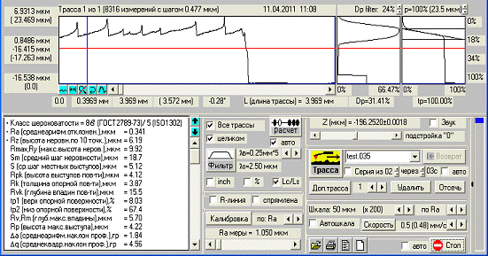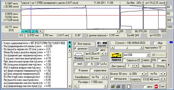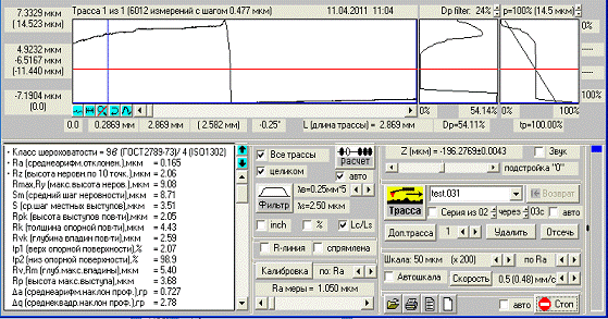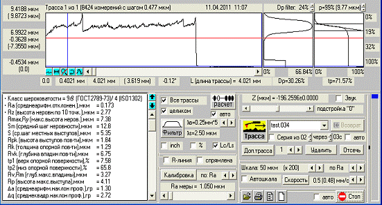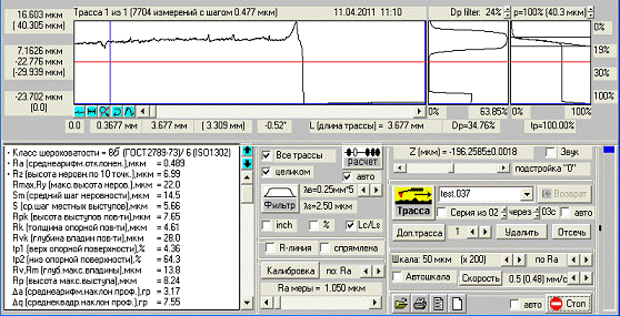 профилометра марки 130 было произведено измерение толщины тонкопленочного