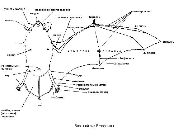 зуб. Крыловая перепонка прикрепляется к ноге на уровне голеностопного сустава.