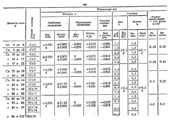 А.И. Соединения шпоночные с призматическими шпонками. Размеры шпонок и сечений