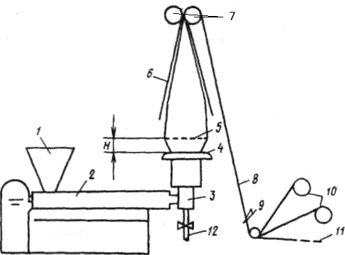 плёнок происходит по выходе из головки, благодаря давлению валков.
