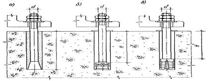 цементной зачеканкой с резьбой диаметром от М12 до М48; б - с распорными