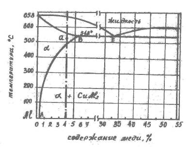 линии предельной растворимости меди в алюминии (линия АВ), выдержка до полного