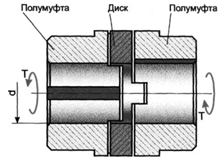 сплошному валу. Сил трения хватает для передачи небольших и средних нагрузок.