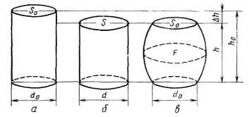 случае, когда образец после сжатия приобретает форму бочки с образующей в виде