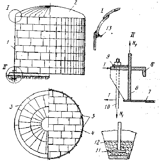 8 - нижнее кольцо жесткости; 9 - анкерная консоль; 10 - анкерный болт; 11 -