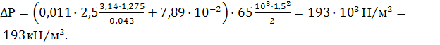 - коэффициент сопротивления поворота (см. прил. 12[1]) (при D1/Dтр.э=1,275/0,043=29,7; φпов=7,89·10-2);