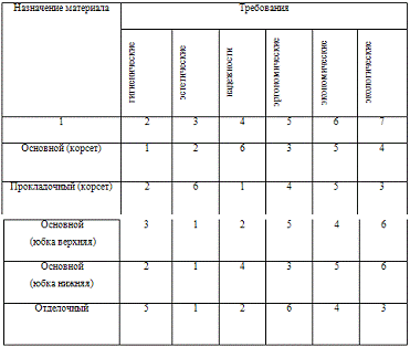 сформированы требования к материалу корсета. Анализ свойств и их ранжирование