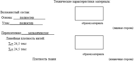 В карте так же указаны наименования текстильных материалов и их артикулы.