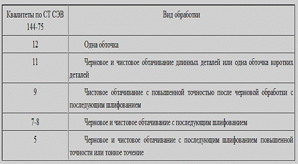 Порядок обработки поверхностей в зависимости от требуемого квалитета