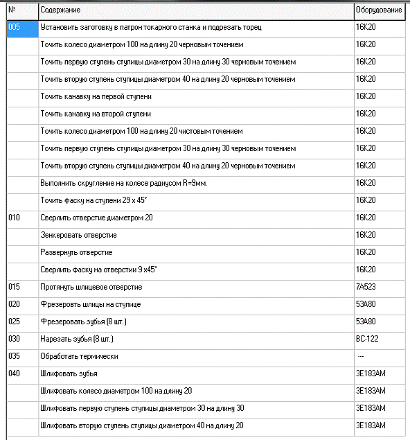 изготовления изделия с расчленением их по переходам, с указанием режимов работы