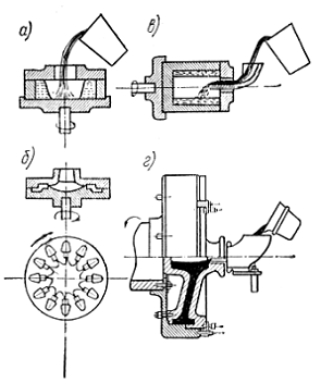 заливают во вращающиеся формы; формирование отливки осуществляется под