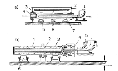 ковша 4 заливают через желоб 3, который в процессе заливки металла