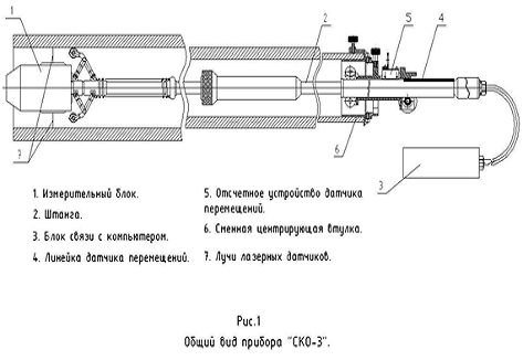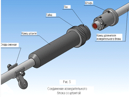 датчиков. Измерительный блок жестко соединен со штангой, которая центрируется