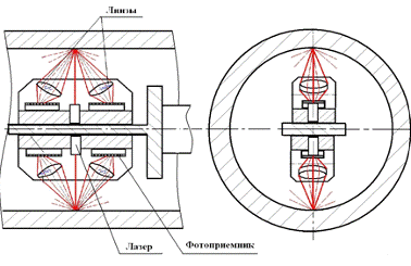 излучения из двух датчиков, расположенных на головке измерительного блока.
