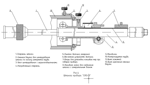 втулок для центрирования конца штанги на измеряемой трубе. Каждая сменная