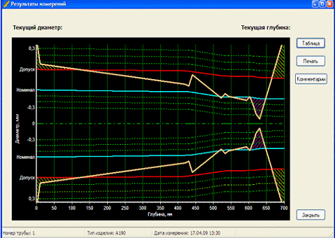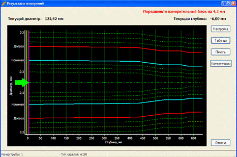 датчика длины, которые анализируются и сравниваются с допускаемыми размерами