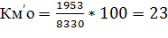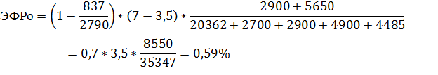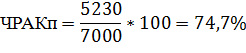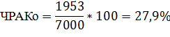 Значение ЧРАК за отчетный период =0,19*23*6,3=27,5%