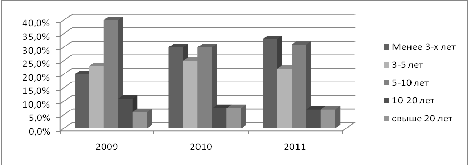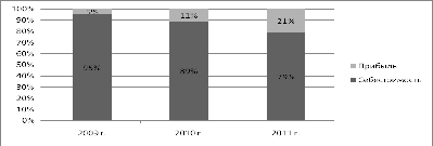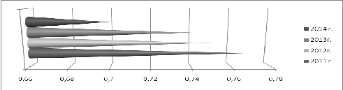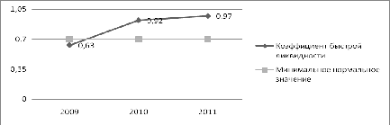 снизил свое значение за период 2009-2011 гг. 0,77 до 0,59, это оценивается