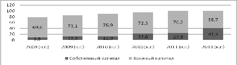 денежных средств (коэффициент Бивера) возрос с 0,2 в 2009 г. до 0,44 в 2011 г.