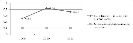 показал, что коэффициенты быстрой, текущей и абсолютной ликвидности находятся
