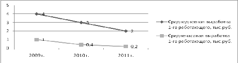 снижается показатель среднедневной выработки в 2009г. он был равен 4 тыс.руб.,