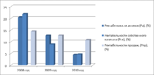 рентабельность продаж в 2010 году по сравнению с 2008 сократилась на 3,68 % и