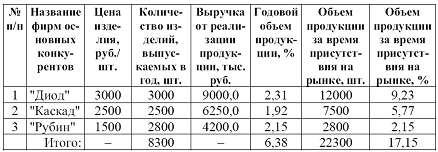 определить объем реализации приборов у основных конкурентов - «Диод», «Каскад»,
