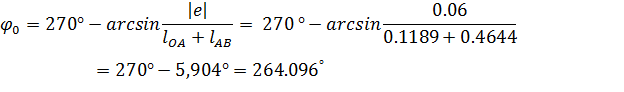 Обобщенная координата механизма φ0 в крайнем, наиболее удалённом