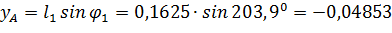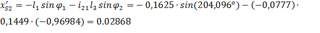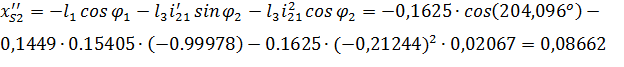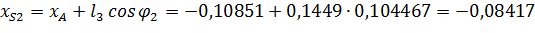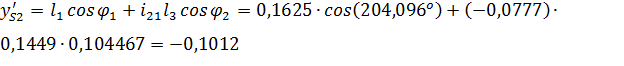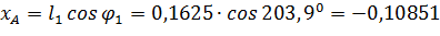 Рисунок 4 - Обобщенные координаты механизма в крайнем наиболее удаленном положении