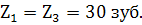зубьев по формулам: