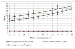 старта, времени гелеобразования и времени подъёма пены от объёма