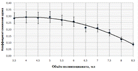 коэффициента сухого остатка от объёма полиизоцианата при постоянном объёме