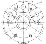 прижимают к торцовой поверхности корпуса 1 крышкой 4 и винтами 5. Круг