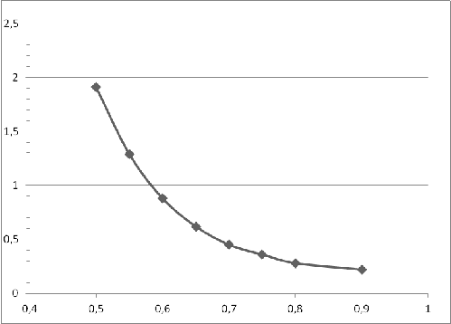 2 - 0,75; 3 - 1,15; 4 - 1,76; 5 - 3,24; 6 - 9,56.