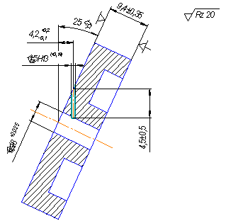 отверстием с другой сторону под углом 25° к торцевой поверхности, и косозубую