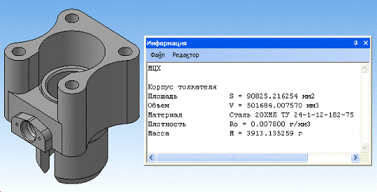 Габаритные размеры детали «Корпус толкателя»: 129×115×105 мм. Деталь состоит из фасонного