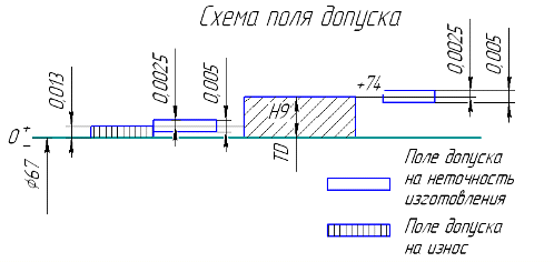 диаметр отверстия 67мм, выполненный по 9 квалитету точности с