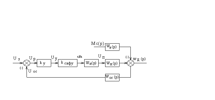 рассматриваемого замкнутого электропривода по управляющему воздействию в данном