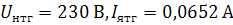 номинальные напряжение и ток,