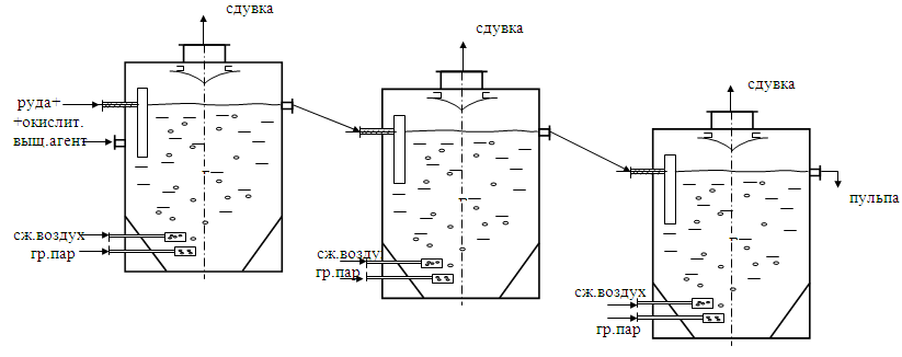 Процессы выщелачивания ведут в агитаторах (аппараты с механическим