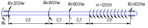 [σ] = 160МПа, [τ] = 80МПа,
