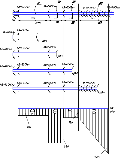 М1│0 = 0 кН∙м