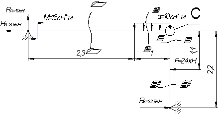 = 5кН*м; q=8kH/