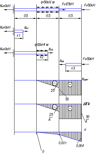М2│0 = 0 кН;