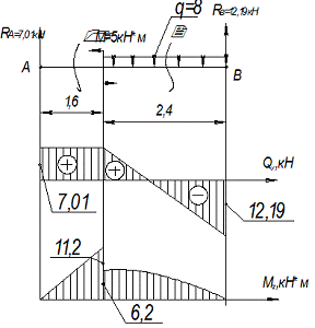 2,4∙12,19- 8∙2,42/2= 6,2 кНм
