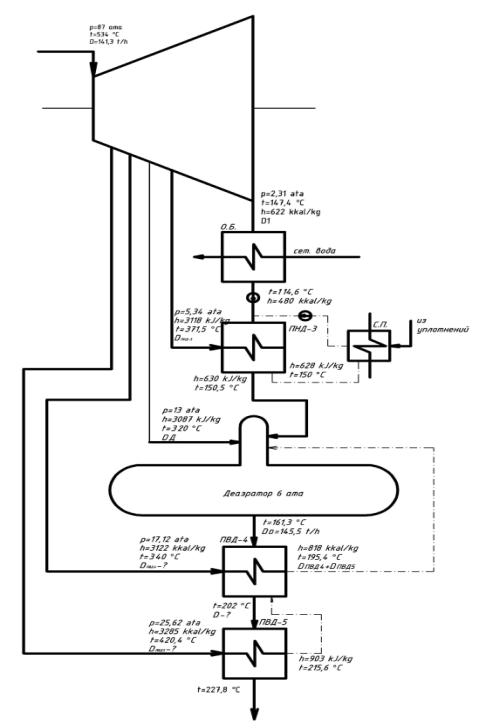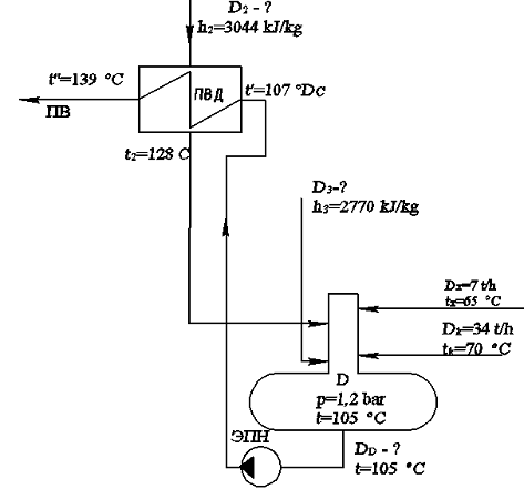 ПВД - расход пара на подогреватель высокого давления, GПВД =2,28 т/ч .