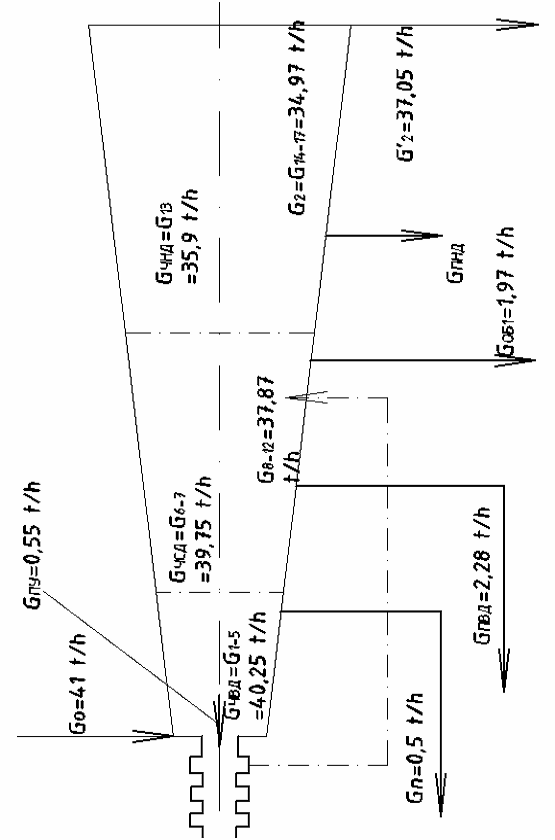 Элементами схемы являются:- расход свежего пара, G0=41 т/ч.ЧВД - расход