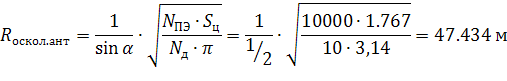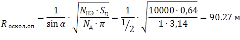 части осколки разлетаются под углом 30 градусов, тогда радиус поражения для